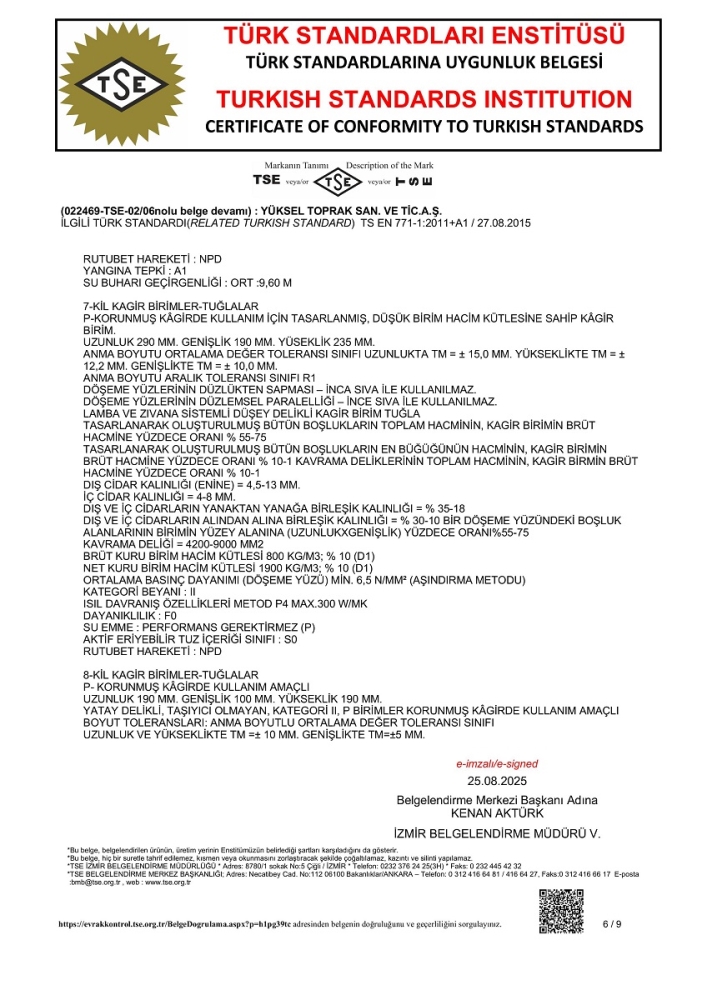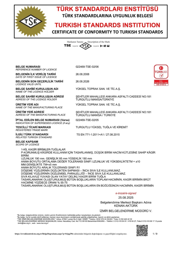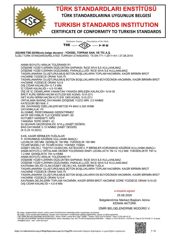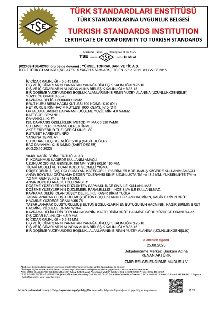 TS EN 771-1 standardına bağlı olarak D1 toleransı içinde değişebilir