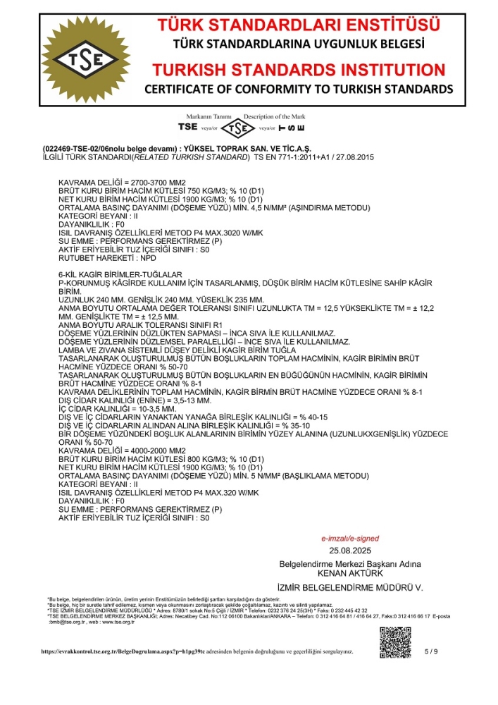 İlgili değer TS EN 1745 MODEL P4'e göre hesaplanmıştır.