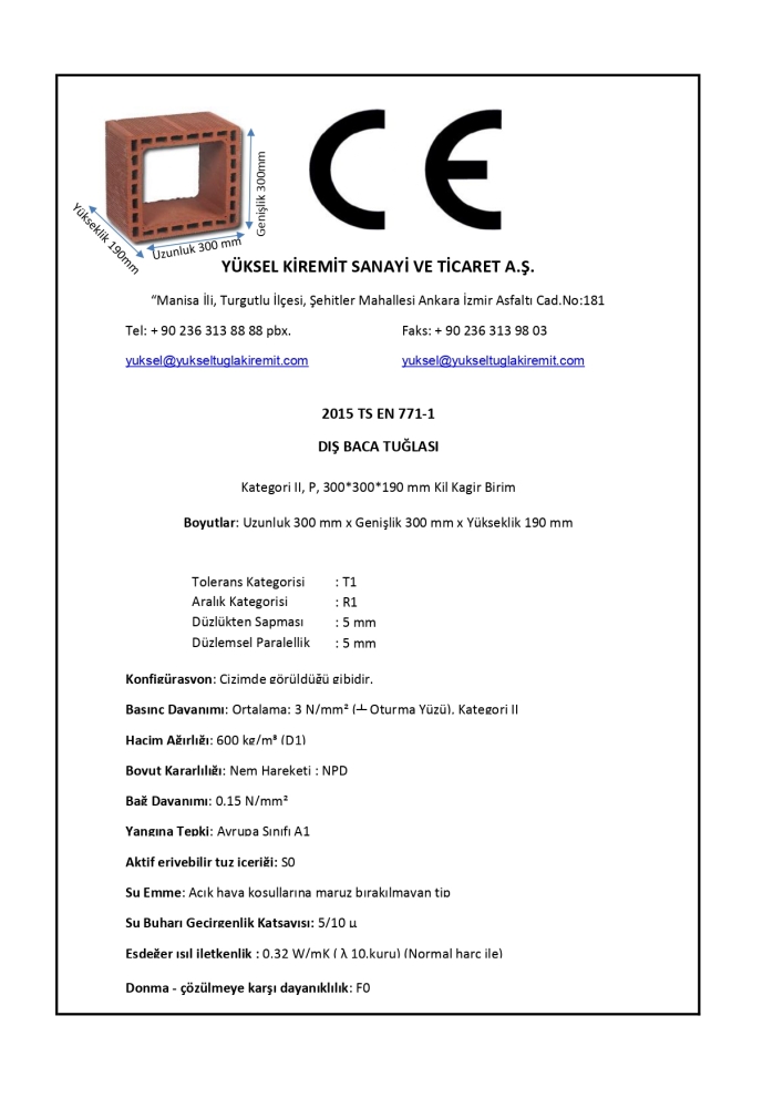 TS EN 771-1 standardına bağlı olarak D1 toleransı içinde değişebilir